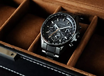 블랙 문자판에 체커 플래그 무늬를 디자인하고 블루 포인트 컬러가 강조되고 있습니다. 평균 월차 +-15초 이내로 정밀도가 높고 10기압 일상 생활용 강화 방수 사양으로 일상적으로 사용하기 쉬운것도 포인트입니다. 업무용으로 착용할만한 추천 시계입니다.